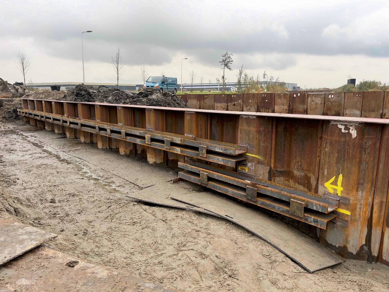 Levering en montage van stalen ankergordingen voor een damwandconstructie. De gordingen zorgen voor de horizontale stabiliteit van de damwand en zijn op locatie gelast en gemonteerd.